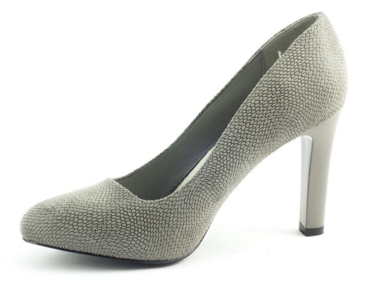 Pompe eleganti e universali in una tonalità di grigio che combinano il taglio classico con il comfort di utilizzo. Un modello con un naso di mandorle e un tacco stabile - ideale per l'ufficio e per le uscite serali.
