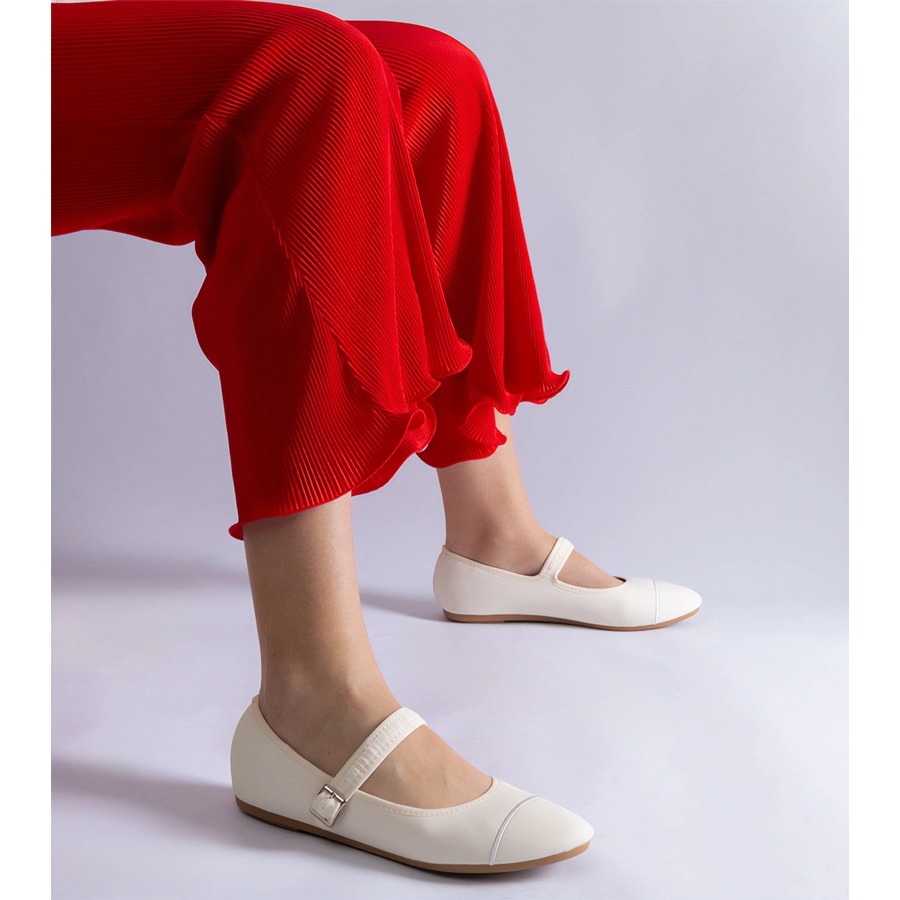 Dettagli: Ballerine bianche dalla finitura opaca, chiuse con fibbia bianca