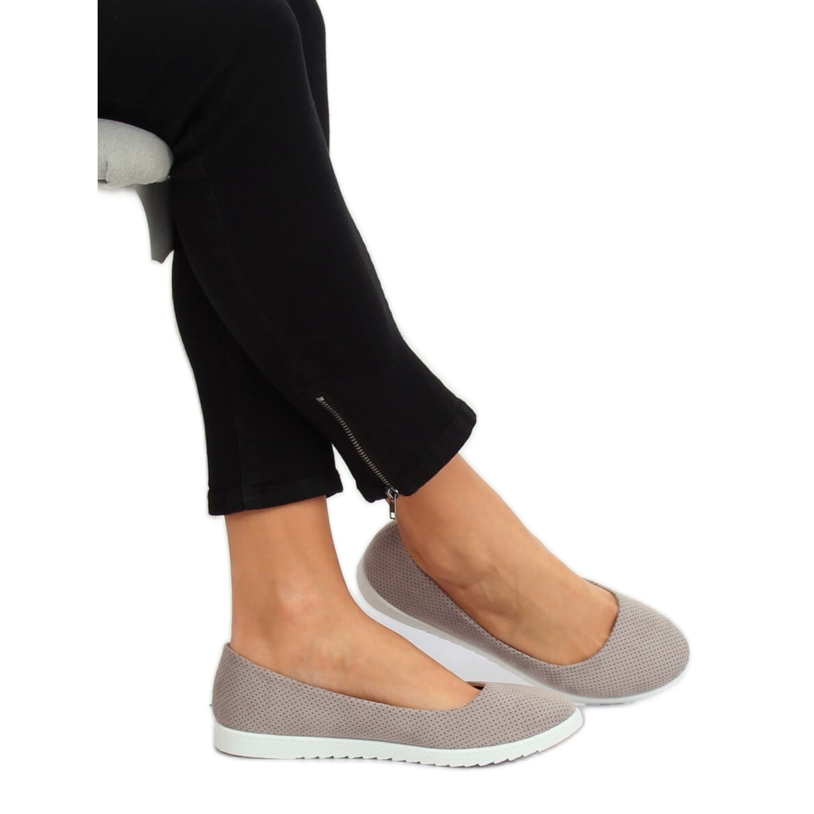 Le ballerine grigie da donna 7845-P Grigio sono la scelta ideale per tutte le donne che apprezzano il comfort e un look alla moda. Queste scarpe eleganti si distinguono per il loro stile sportivo, che si adatta perfettamente alle tendenze primaverili ed estive. Realizzate in pelle scamosciata ecologica, le ballerine sono caratterizzate da un'originale texture traforata, che conferisce loro un carattere unico.