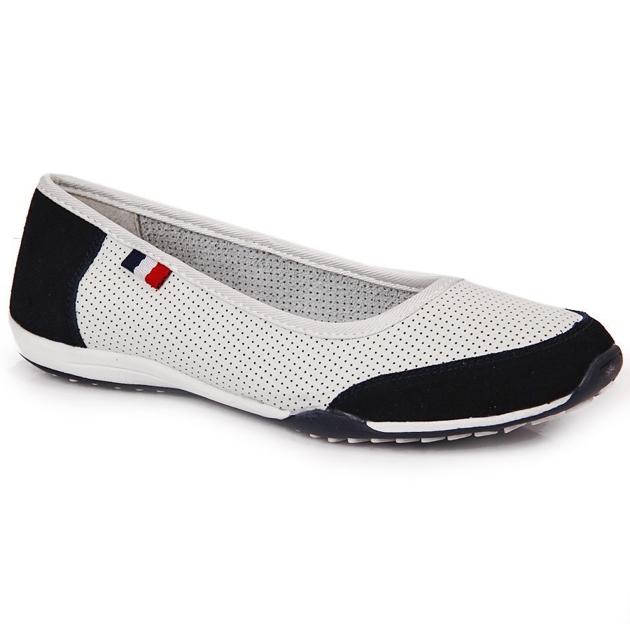 Le eleganti ballerine Filippo Openwork Filippo sono una proposta per le donne che apprezzano il comfort e l'alta qualità. La parte superiore e la fodera sono realizzate in pelle naturale e un morbido inserto di pelle ecologica in pelle scamosciata offre una piacevole sensazione sotto il piede. Il modello in uno stile sommerso, bianco e blu scuro è ottimo per le stilizzazioni quotidiane, primaverili ed estive.