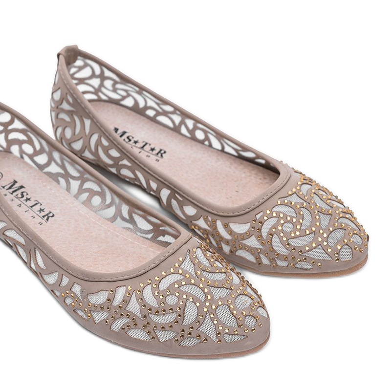 Scopri l'eleganza e la comodità con le ballerine traforate beige. Forza! Si tratta di un modello unico che unisce stile femminile e comodità, perfetto sia per il lavoro che per le uscite serali. La tomaia in rete traforata, decorata con un bellissimo motivo floreale in ecopelle scamosciata color kaki, fa risaltare queste ballerine dalle altre.