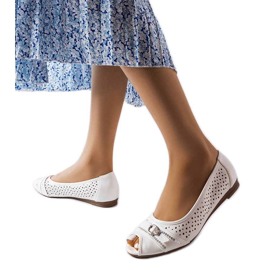 Ballerine traforate bianche con strass di Creek bianco