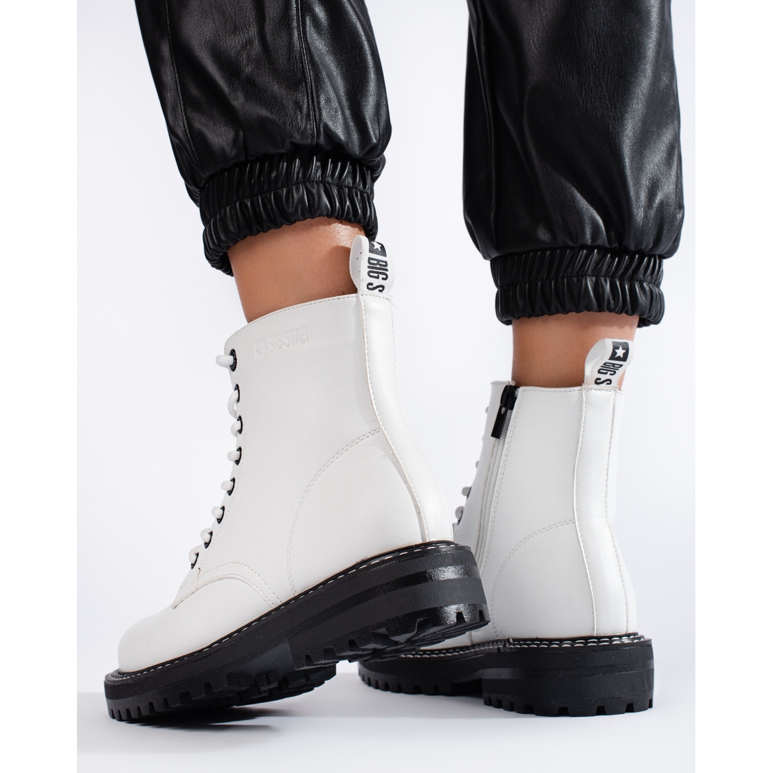 I lavoratori moderni, confortevoli ed eleganti - White Big Star KK274539 sono una proposta per le donne che apprezzano ogni giorno un aspetto casual e leggermente roccioso e conforto. Realizzati in pelle organica, interni isolati e una suola solida e ricostruita li fanno funzionare perfettamente nella stagione autunno/inverno.
