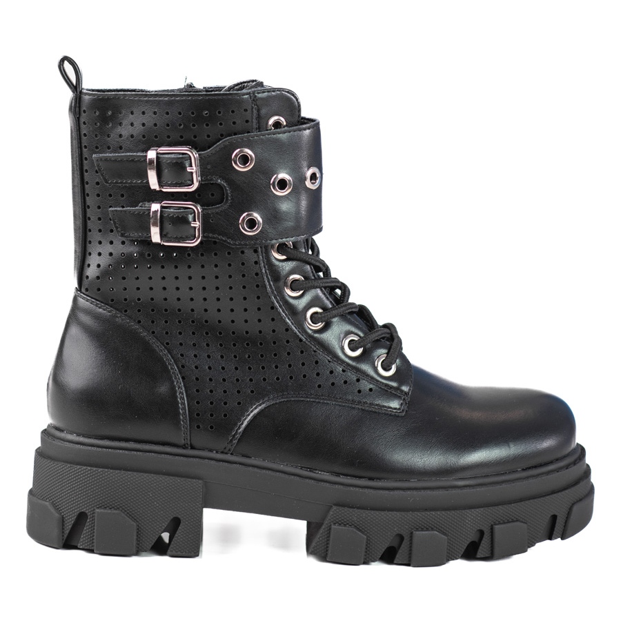 Scopri l'eleganza e la comodità con le lavoratrici traforate da donna sulla piattaforma Shelovet. Questi stivaletti neri sono un'opzione perfetta per le giornate più fredde, combinando stile casual e rock. Grazie all'utilizzo di materiali ecologici di alta qualità, queste scarpe non sono solo attraenti, ma anche rispettose dell'ambiente.