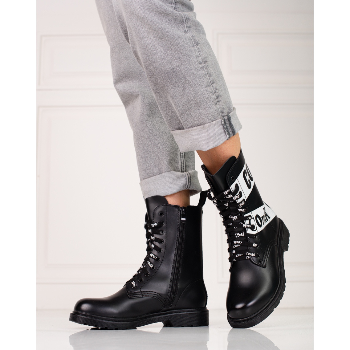 Le lavoratrici classiche e nere sono una proposta che combina un personaggio casual e rock con la comodità necessaria ogni giorno. Realizzati in pelle ecologica, con un inserto tessile, funzioneranno in stilizzazioni autunn-inverno, soprattutto se stai cercando "caviglia" con un design distinto.