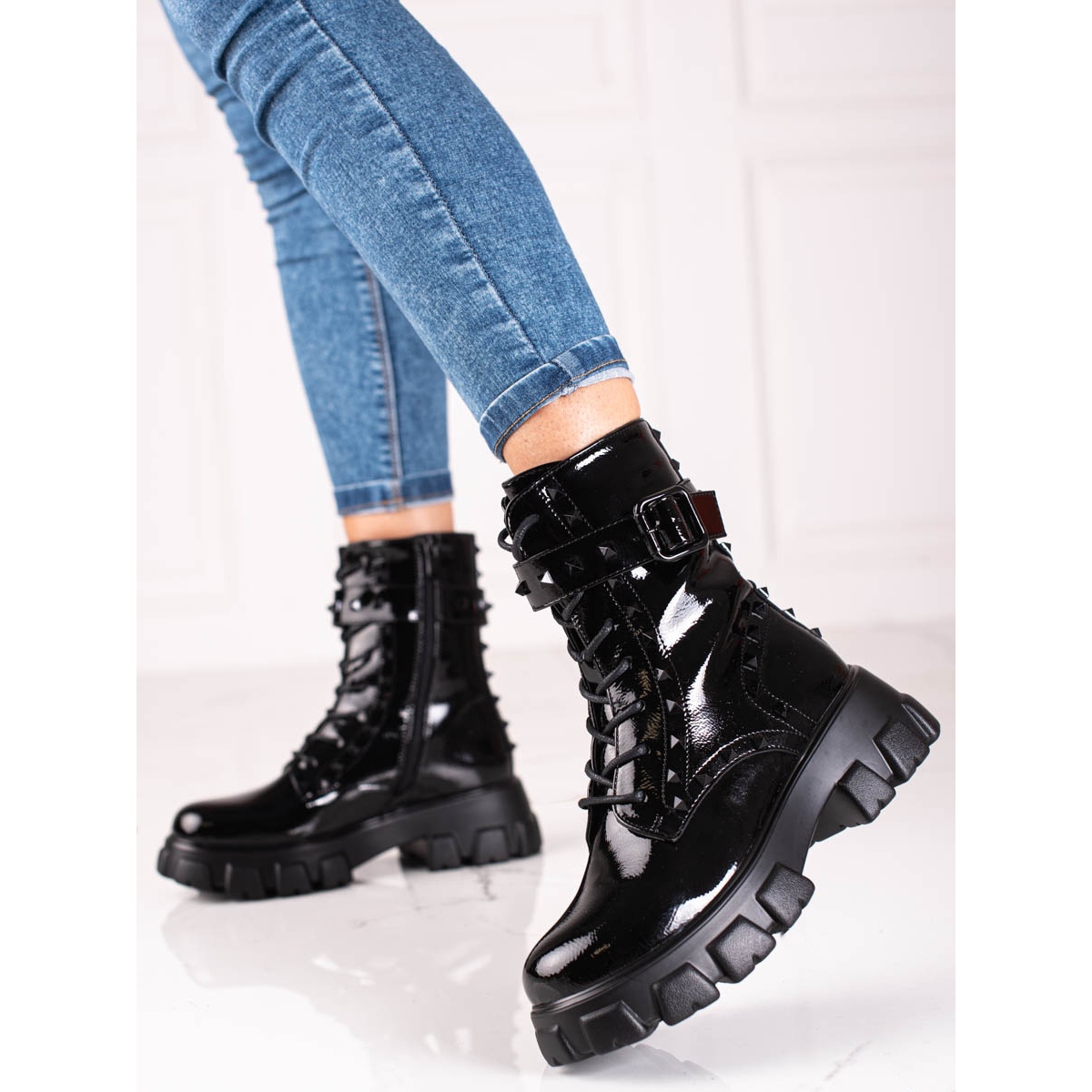 La borsa da lavoro laccata da donna Shelovet è una scelta eccellente per le donne che apprezzano non solo lo stile, ma anche il comfort. Questi stivaletti neri uniscono un carattere casual e rock, rendendoli perfetti per le uscite di tutti i giorni nella stagione autunno/inverno.