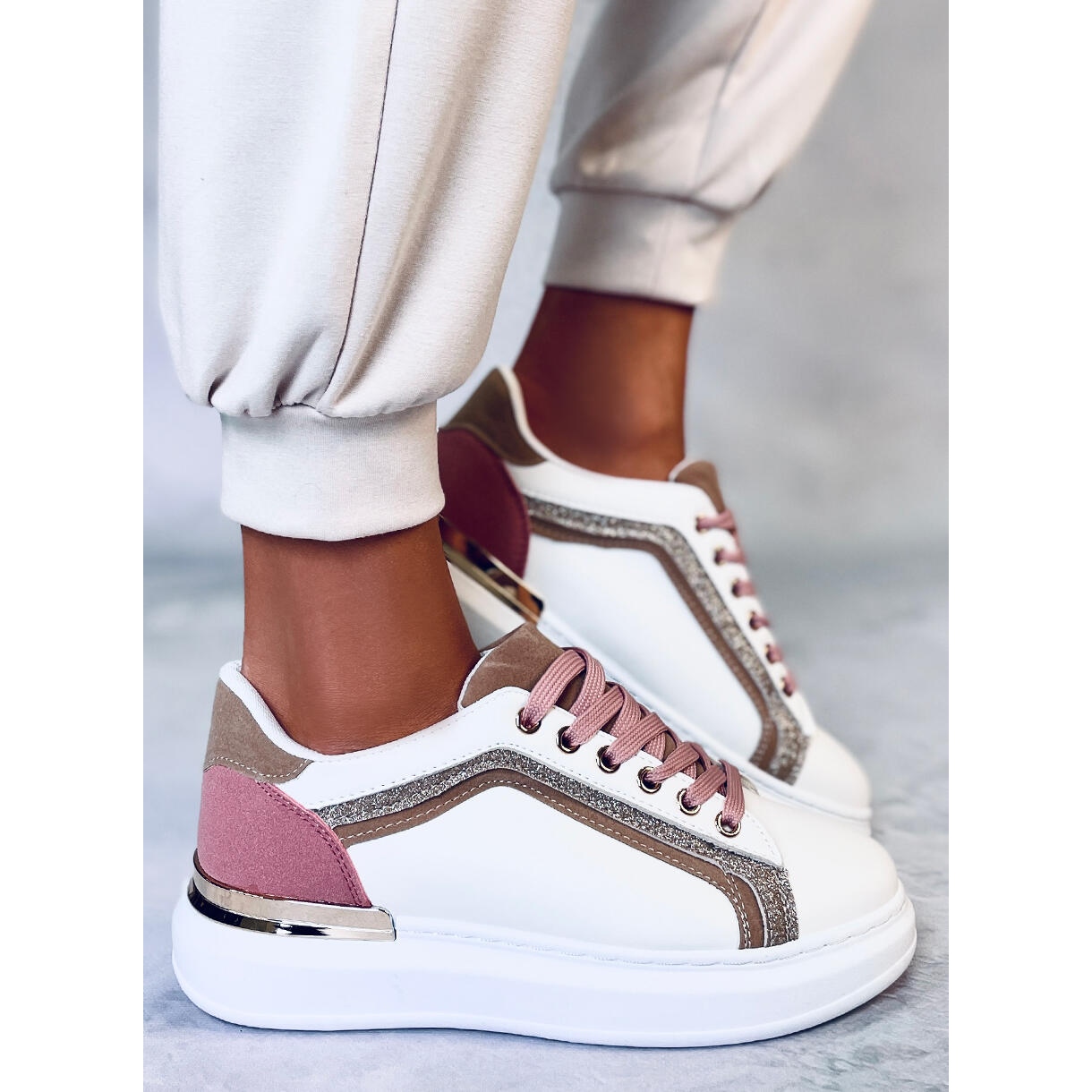 Grazie ai colori universali - accenti bianchi, rosa e multicolori - queste sneakers possono essere abbinate a vari stili, sia per l'uso quotidiano che per gli incontri con gli amici. Abbinali ai tuoi jeans, leggings o gonne preferiti e crea un look unico che metterà in risalto il tuo stile personale.