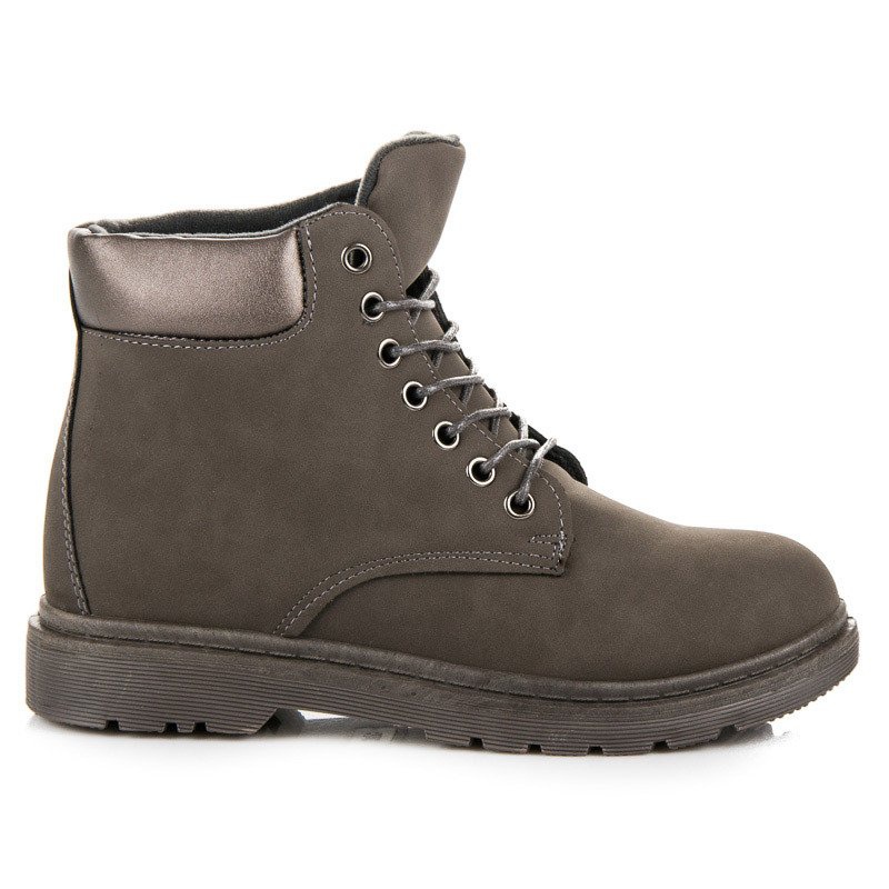 Il colore grigio fa sì che questi stivali si adattino a molti stili diversi, dall'elegante al casual. Il tacco piatto alto 3 cm e la punta tonda garantiscono comfort quando vengono indossate, mentre la chiusura con lacci consente una perfetta aderenza al piede.