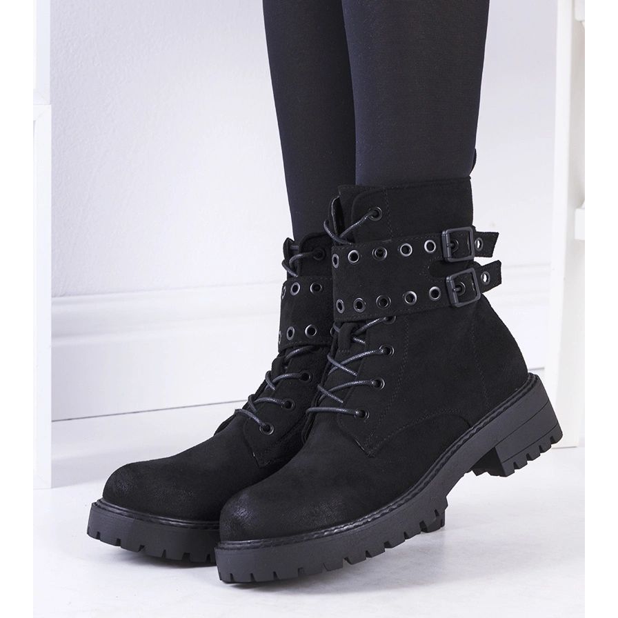 I trapper classici e neri Fallkirk sono una combinazione di comodità e uno stile alla moda e grezzo. Ambientare su una suola in plastica spessa e protetta, con un naso arrotondato e una cintura decorativa con fibbie, sono perfette per le stilizzazioni ogni giorno e casual. La parte superiore fatta di pelle ecologica in pelle scamosciata, interni isolati - perfetta per la stagione autunno/inverno.