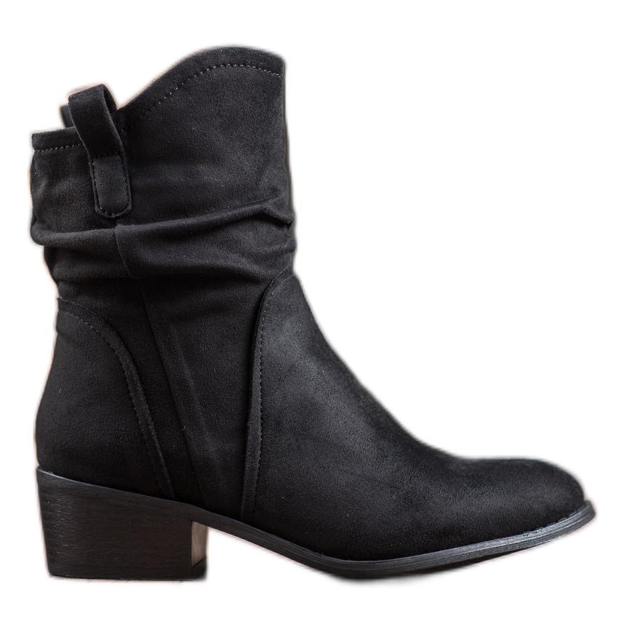 Scopri stile e comfort unici con gli stivali da cowboy a tacco alto Super Mode. Realizzate in pelle ecologica di alta qualità con finitura scamosciata, queste scarpe alla moda combinano perfettamente l'eleganza con la casualità quotidiana. La tomaia arricciata arriva sopra la caviglia, il che conferisce loro un carattere unico, e una pratica cerniera all'interno rende indossare e togliere le scarpe un puro piacere.