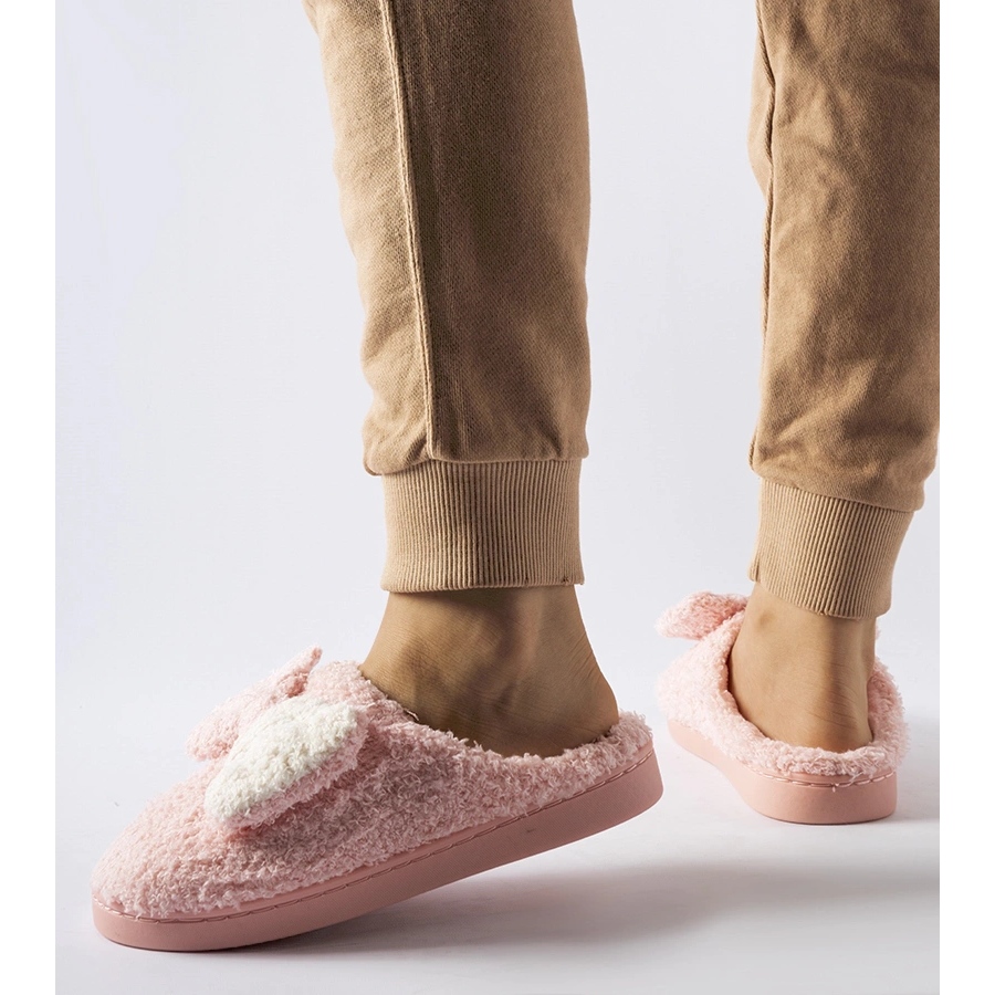 Slipisti caldi rosa con un arco - calzature pratiche, eleganti e confortevoli per la stagione autunnale.