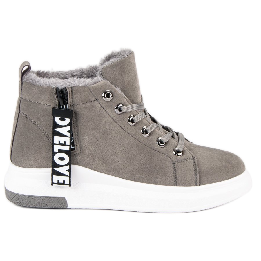 Le sneakers grigie isolate sono una scelta eccellente per le donne che apprezzano lo stile, il comfort e la funzionalità. Queste scarpe uniche combinano un carattere sportivo con un design elegante, che le rende una soluzione ideale per le giornate più fredde. Realizzati in pelle scamosciata ecologica di alta qualità, offrono non solo un aspetto attraente, ma anche durata e comfort.