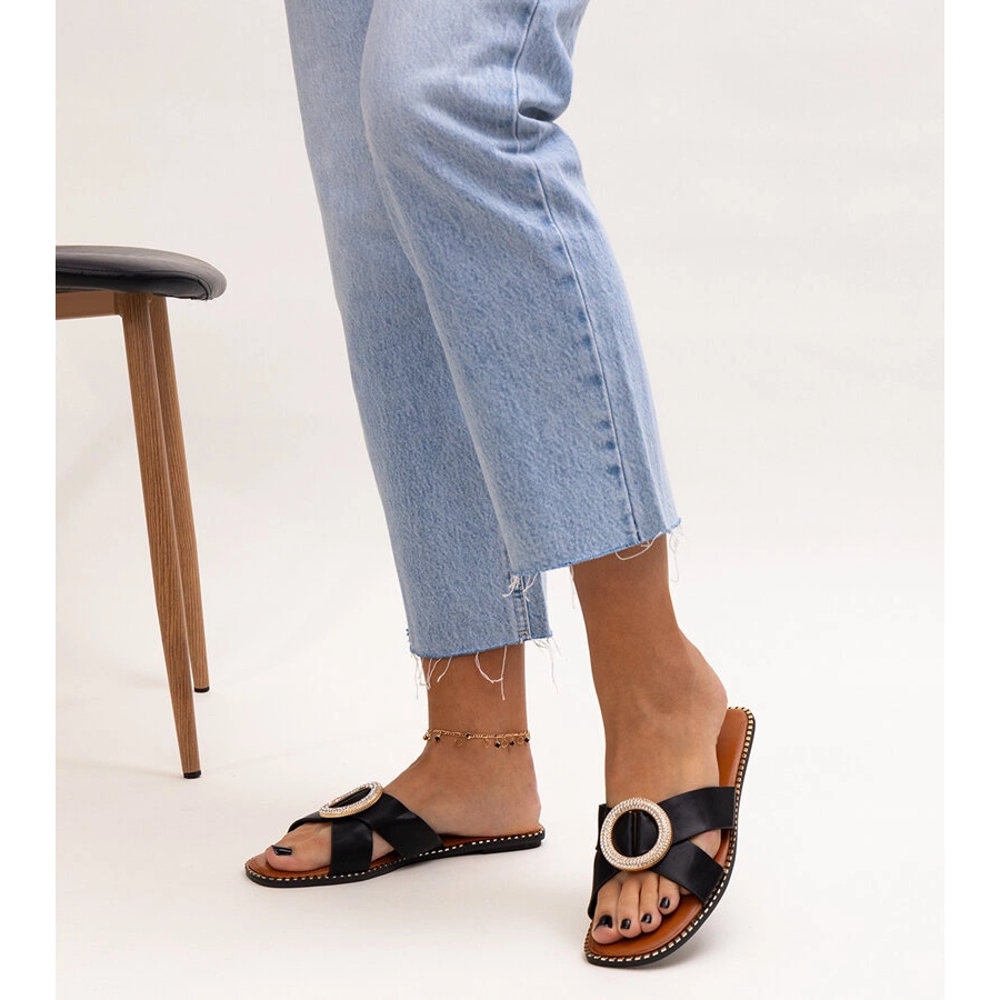 Scopri le fluttuanti uniche decorate con una fibbia nei strass di Salimb in un classico colore nero, che sono una proposta eccellente per le calde giornate estive. Questi flip -flip eleganti e inseriti combinano comfort ed eleganza, grazie a cui saranno il complemento perfetto per la stilizzazione estiva.