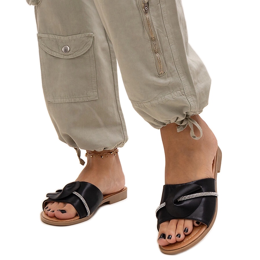 Incontra le infradito decorate con una cintura con zirconi amarari in un elegante colore nero. È la scelta perfetta per le calde giornate estive, combinando design alla moda e comfort di indossare. Grazie alla punta rotonda e alla struttura inserita con strisce di gomma, indossare e togliere i lembi diventa estremamente semplice.