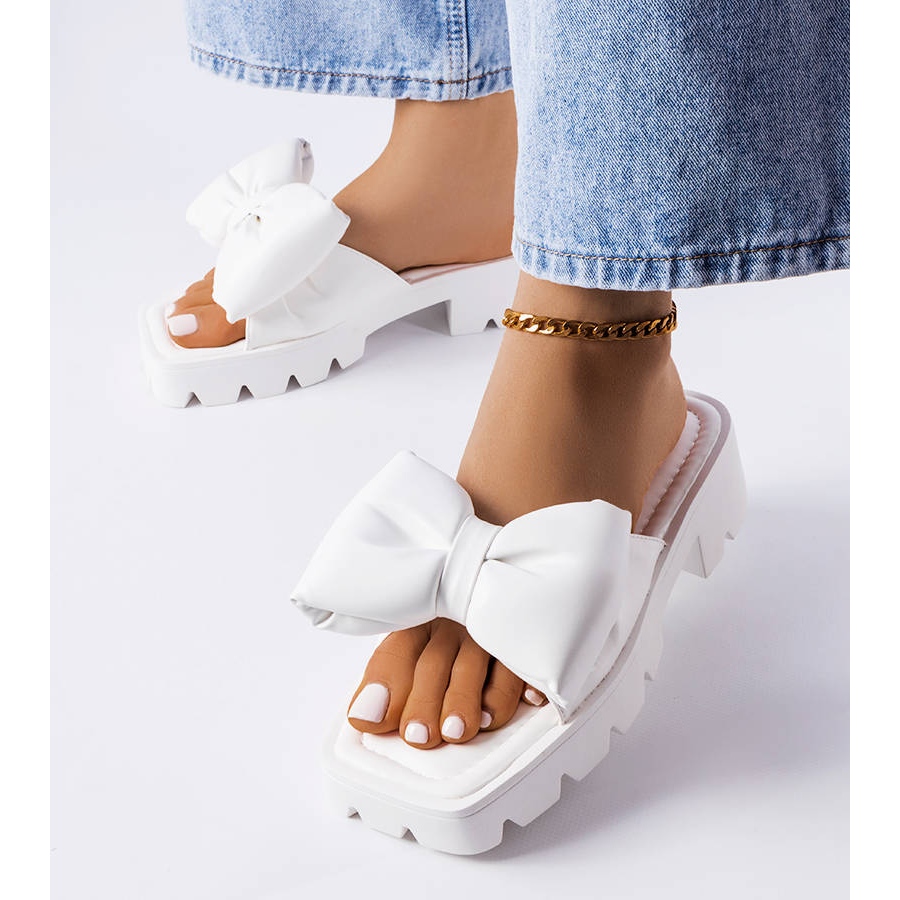 Design: L'unicità delle scarpe Bossé risiede nel loro design minimalista ma elegante. La suola spessa e alla moda con le caratteristiche scanalature non solo attira l'attenzione, ma garantisce anche stabilità e assorbimento degli urti durante le passeggiate. L'ecopelle monocolore con un fiocco nel tono delle calzature aggiunge eleganza ed è un complemento sottile allo stile estivo.