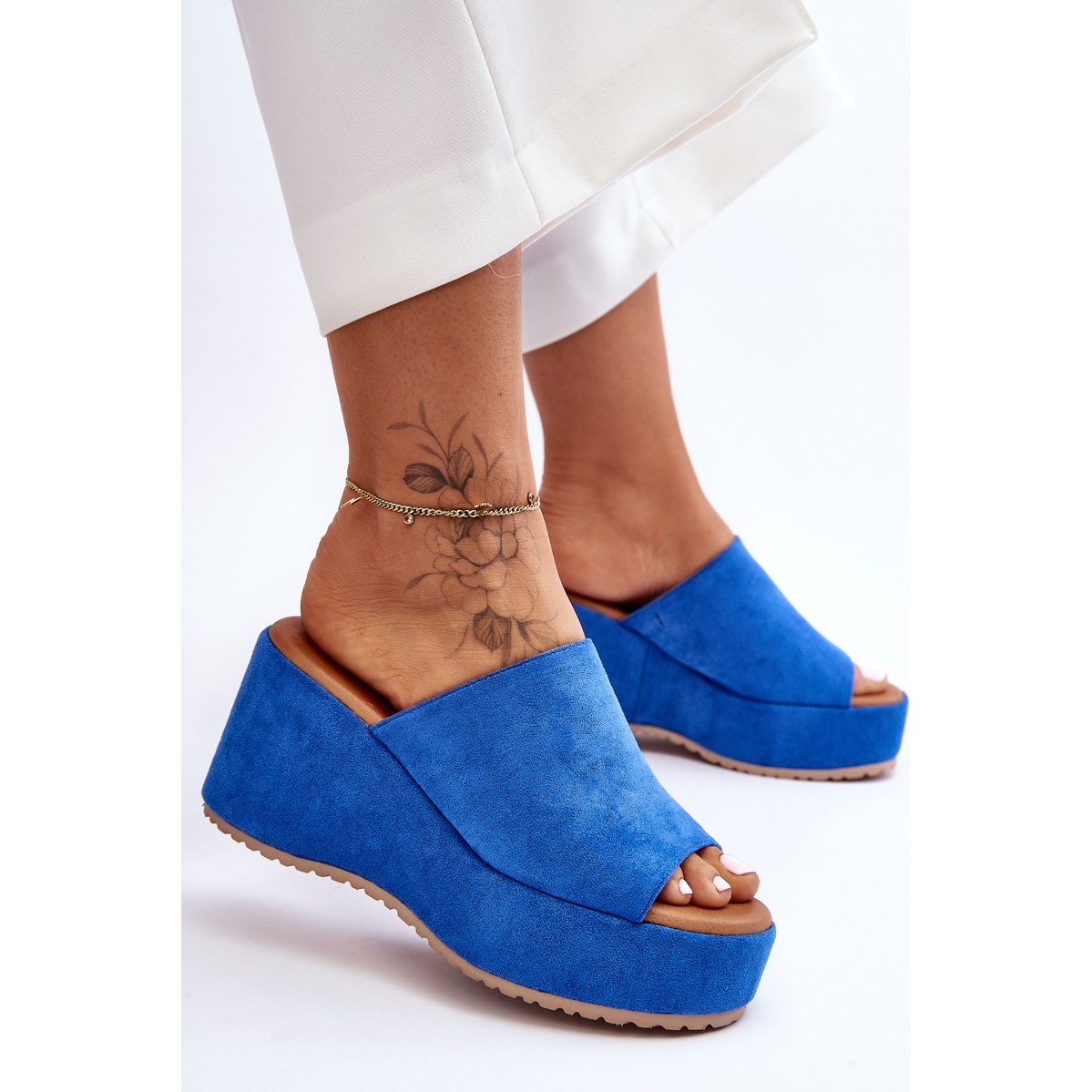"Infradito da donna Martina blu su piattaforma massiccia – Decorazione alla moda per le giornate estive"