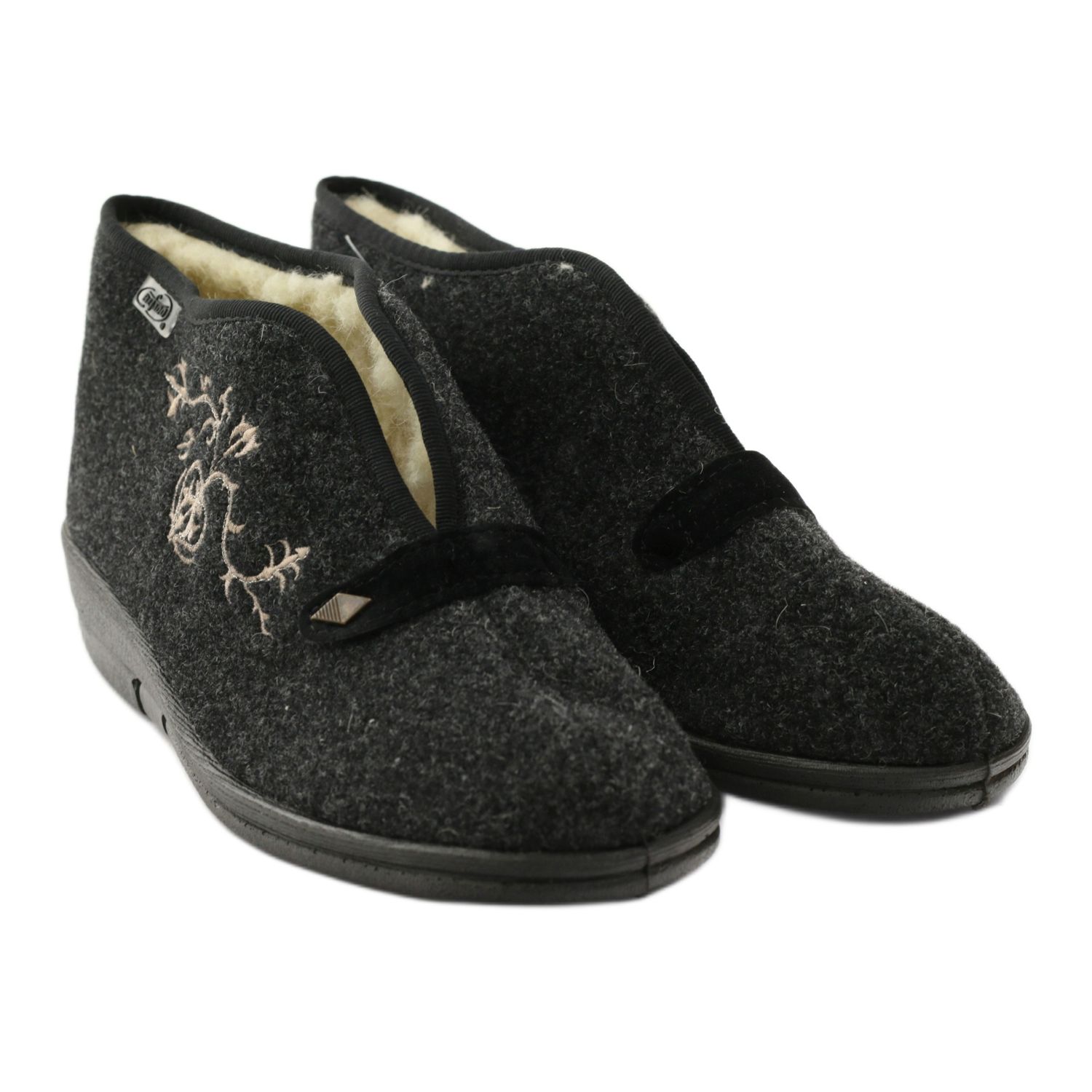 Calde, comode ed eleganti: le pantofole del marchio polacco Befado, modello 031D028, sono la combinazione perfetta di funzionalità e aspetto alla moda per le giornate più fredde. Realizzati in tessuto di feltro di alta qualità, isolato con lana di pecora naturale, offrono comfort e protezione dal freddo sia in casa che in cortile.