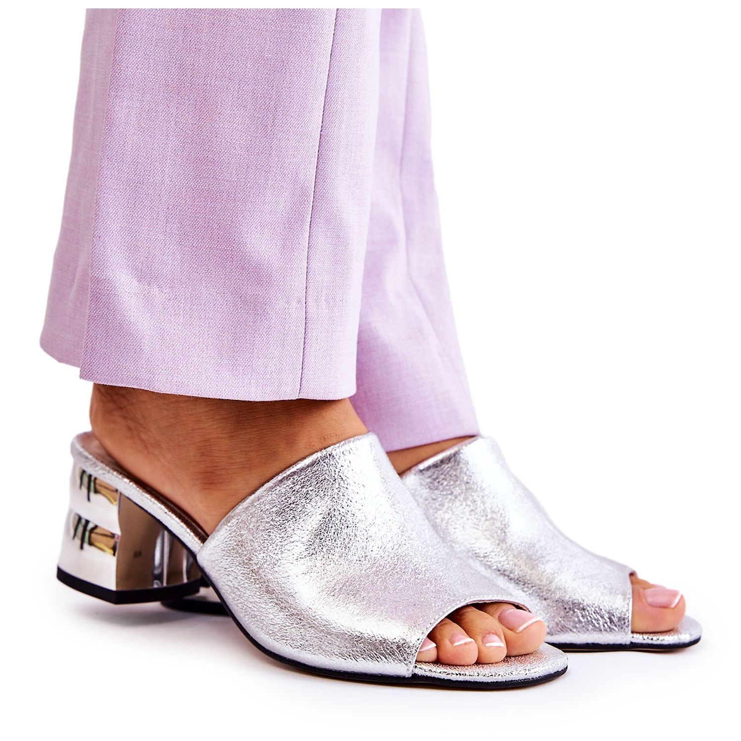 Dettagli: PA2 Ciabatte Da Donna In Pelle Con Tacco Argento Perry