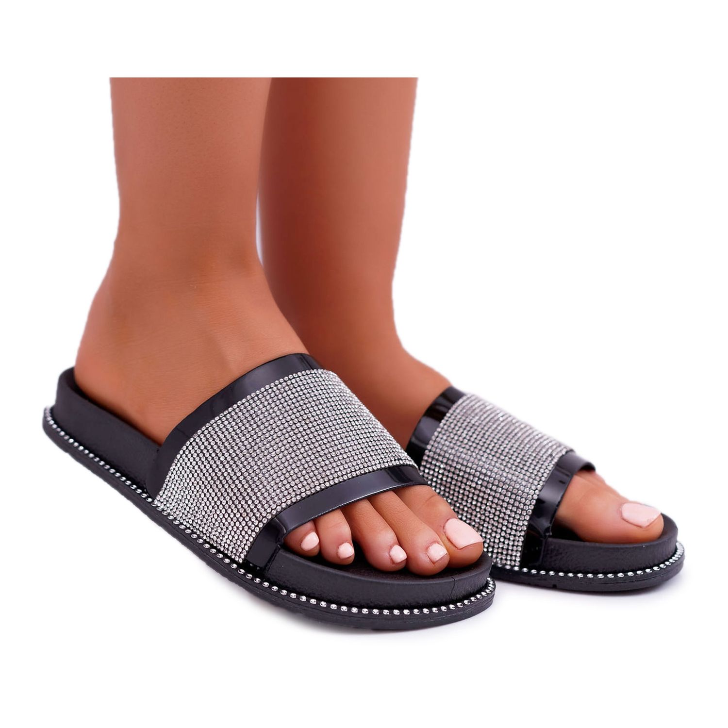 FRBS FRBS Ciabatte da donna, profilate con zirconi, Nero Rentre