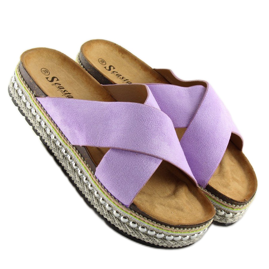 Realizzate in pelle scamosciata ecologica di alta qualità, queste infradito hanno un aspetto estremamente elegante. Il colore viola abbinato agli strass aggiunge fascino e originalità. L'interno delle infradito è rifinito con un morbido tessuto, che assicura praticità e comfort una volta indossate.