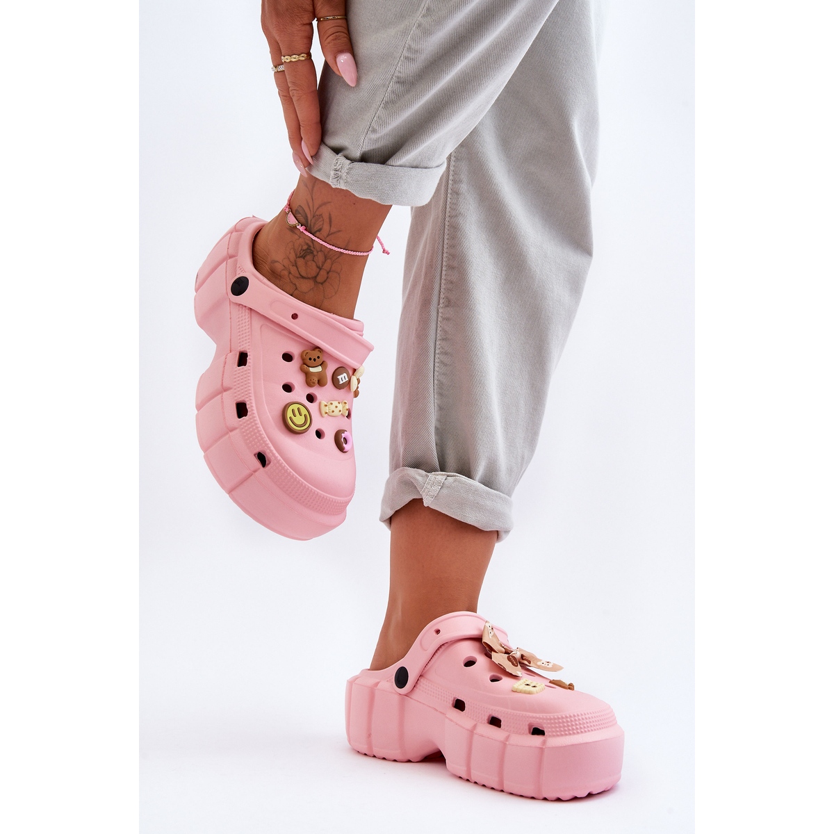Questi coccodrilli unici sono la definizione di comfort estivo combinato con un po' di dolce fantasia. Leggeri come una nuvola, realizzati in materiale espanso innovativo, offriranno ai tuoi piedi comfort e libertà per tutto il giorno. Inoltre, le decorazioni di design sulla tomaia donano a queste infradito un carattere unico, facendo sì che non passerete inosservate indossandole.