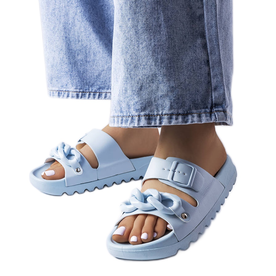Hit estivo: infradito comodi ed eleganti che funzioneranno in stilizioni quotidiane e casuali. Realizzati interamente in gomma: le cinghie flessibili stabilizzano il piede, sono decorate con fibbie decorative e una catena sottile che aggiunge carattere. La suola in gomma alta da 2,5 cm offre un aspetto ammortizzante e alla moda e una superficie liscia e asorta si adatta a molte combinazioni.