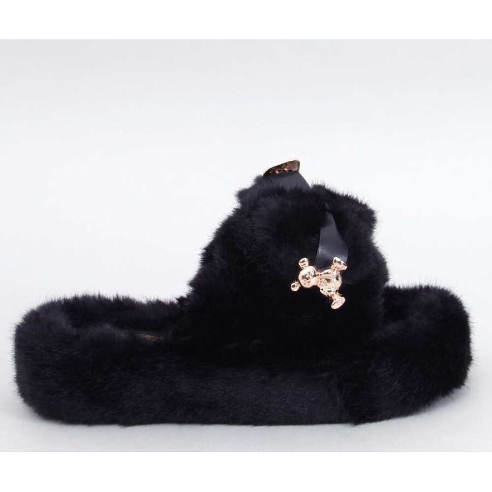 Ciabatte in pelliccia con fiocco e orsetto Burano Nero - Inello