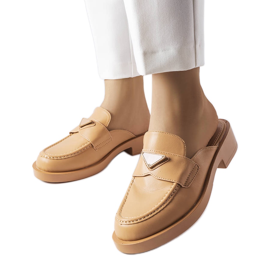 Flip -flip del Berkshire classico e allo stesso tempo eleganti all'ombra di Khaki (marrone) combinano comfort con sottile eleganza. Un modello a ruota piatta con un dito arrotondato incorporato interamente in pelle ecologica. Cuci delicati e una decorazione in metallo sul davanti danno alle scarpe un personaggio sofisticato - ideale per le stilizzazioni quotidiane quando vuoi apparire pulito e femminile.