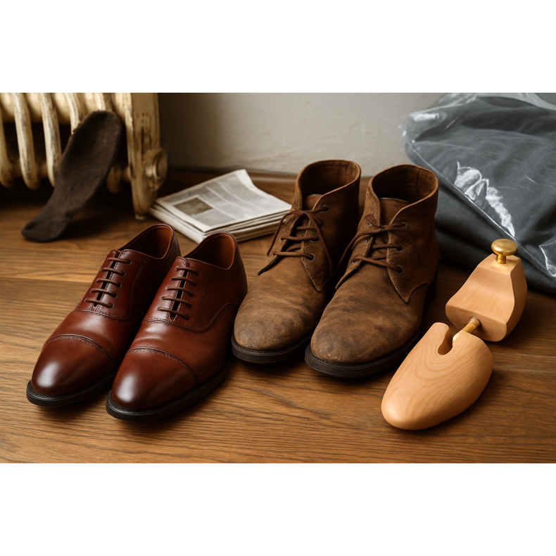 Allungare la vita delle scarpe è una combinazione di abitudini quotidiane (rotazione, forme delle scarpe), manutenzione regolare (pulizia, creme, impregnazione) e risposta rapida ai danni (riparazioni, risuolatura).