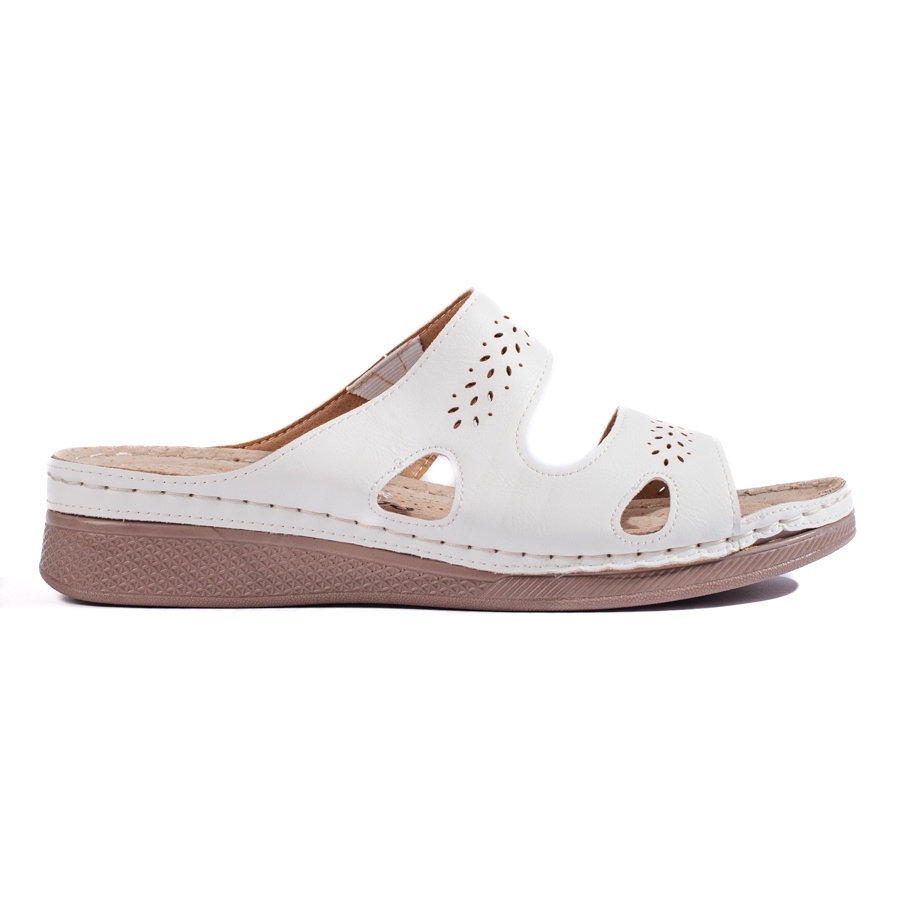 La piattaforma alta 5 cm consente un sollevamento comodo, senza rinunciare a un tallone piatto, che stabilizza perfettamente ogni passo. Il colore bianco brillante, che va bene con molte stilizzazioni, rende questi infradito un ottimo complemento al tuo guardaroba, sia in abiti casuali che più alla moda.
