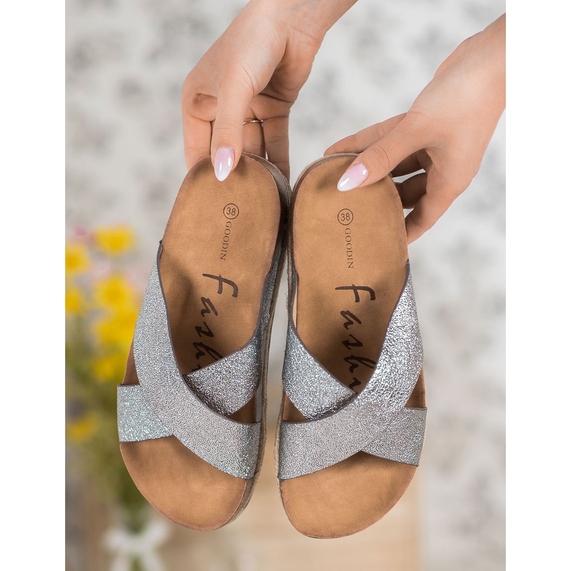 Scopri la comodità e l'eleganza con le infradito argento Goodin. Queste eleganti infradito da donna sono la scelta perfetta per tutti i giorni, combinando un design classico con accenti moderni. Realizzate in pelle ecologica, assicurano comodità da indossare tutto il giorno, e il tallone aperto le rende facili da indossare.
