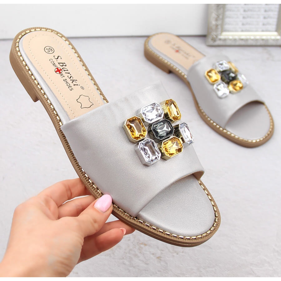 Scopri eleganza e comfort in un paio di scarpe! Le pantofole da donna S. Barski 031 sono la scelta perfetta per le donne che apprezzano il comfort e un look alla moda. Queste infradito d'argento, decorate con zirconi efficaci, sono perfetti sia per le gite estive.