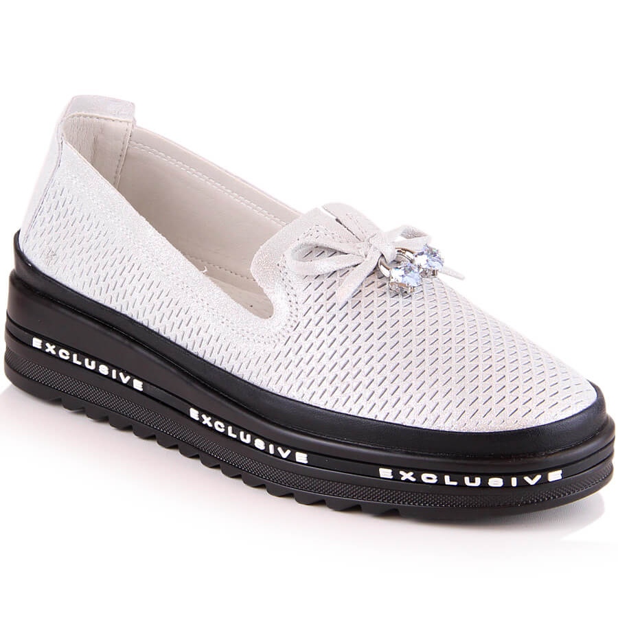 Dettagli: Comode scarpe slip-on da donna in pelle argento S.Barski AL22400