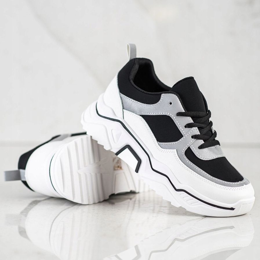 Dettagli: SHELOVET Comode sneakers sportive bianco nero argento