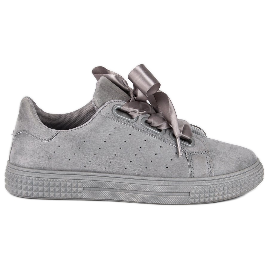 Il loro colore grigio chiaro li rende facilmente abbinabili a tanti outfit diversi. I lacci argentati lucenti e il motivo traforato sui lati aggiungono un carattere unico alle scarpe, quindi attireranno sicuramente l'attenzione.