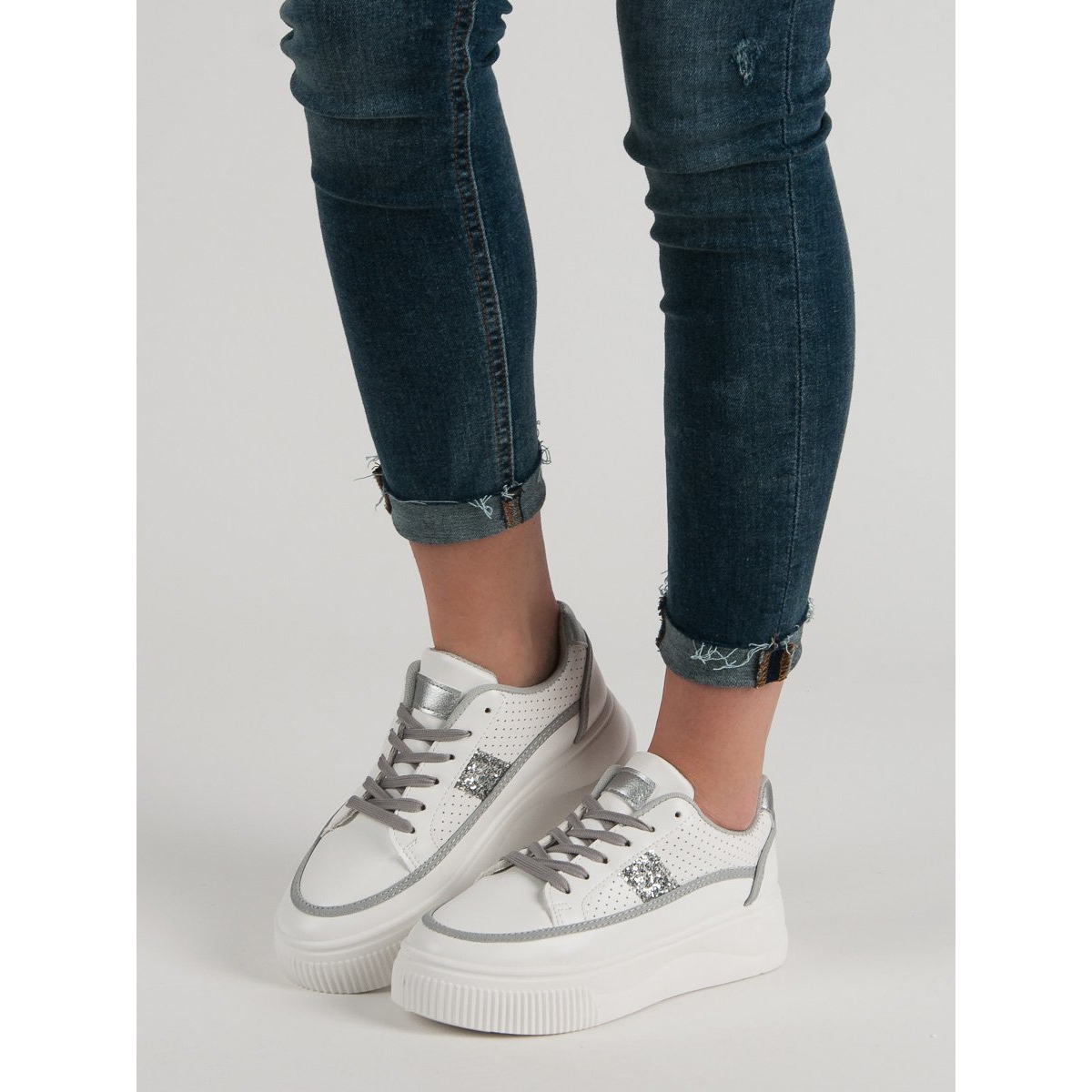 Presentiamo rampicanti bianchi con glitter: un must per ogni appassionato di moda! Queste scarpe sportive realizzate in pelle ecologica di alta qualità sono una perfetta combinazione di stile e comfort. Il loro design universale li fa abbinare perfettamente a vari stili, sia con gonne romantiche che con jeans casual.