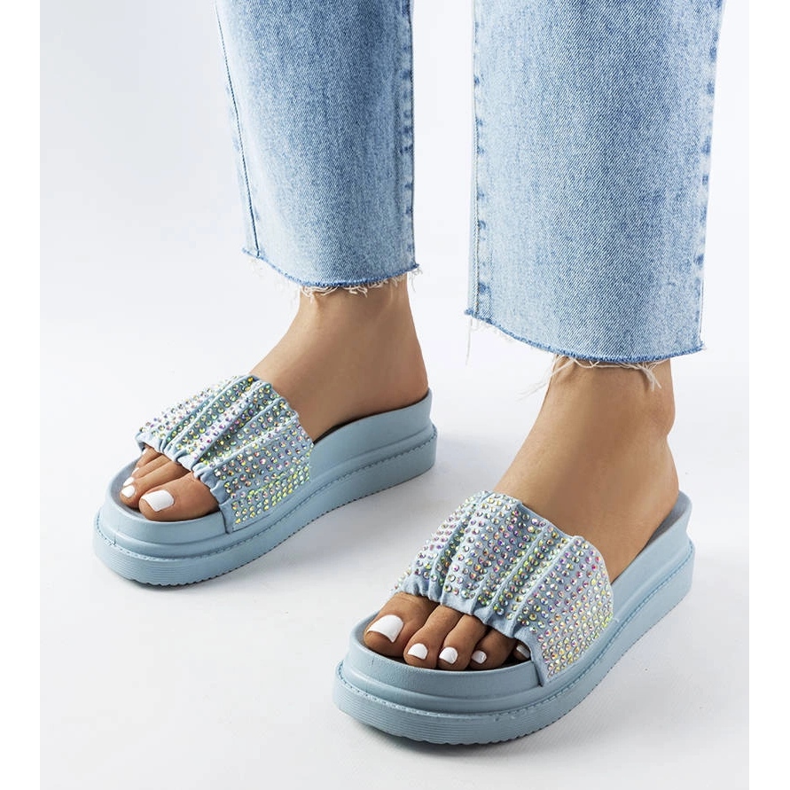Flip blu con zirconi di Frant - stile e comfort per l'estate. L'elegante e moderno taglio in un'intensa tonalità blu con uno zircone luccicante nella parte superiore fa sì che questi infradito da slip -up funzionino bene sia per le stilizzazioni quotidiane che per la sera. Il design leggero e arioso offre comfort nei giorni caldi e un tallone alto e alto 5 cm dà un aspetto femminile mantenendo il comfort di camminare.