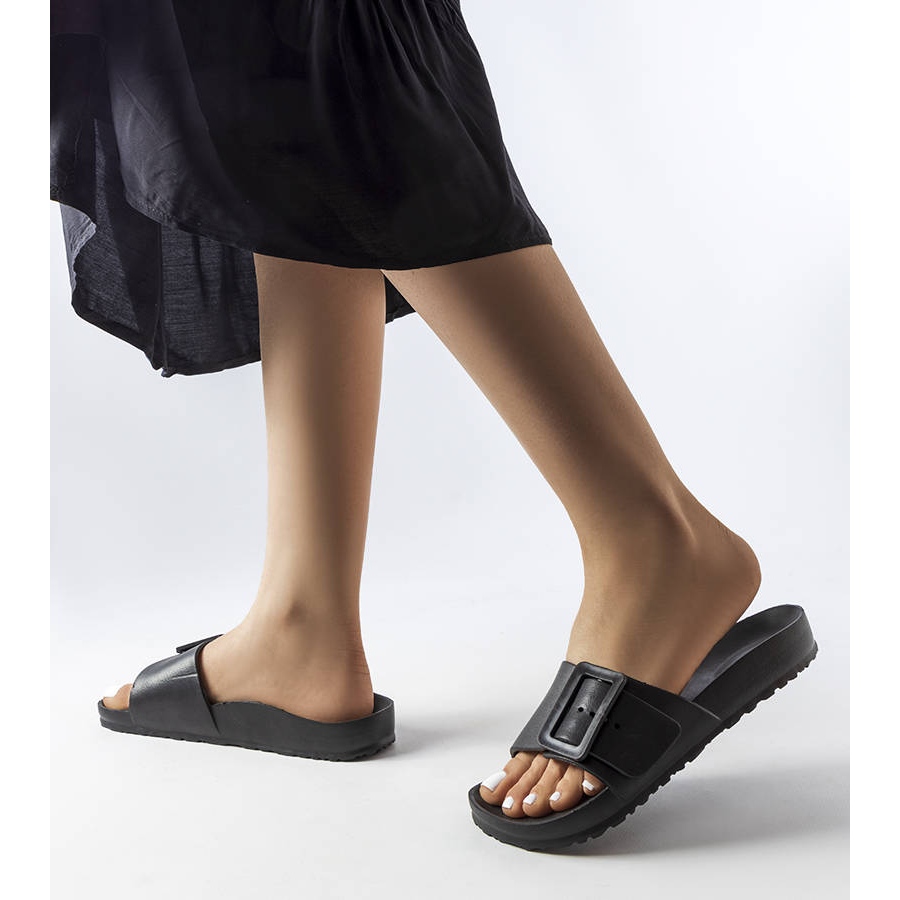 Ecco la soluzione perfetta per le giornate estive: infradito in gomma nera con fibbia Nelm. Queste infradito eleganti e comode, prodotte dal marchio Inna Marka, sono una scelta eccellente per le donne che apprezzano il comfort e un look alla moda ogni giorno.