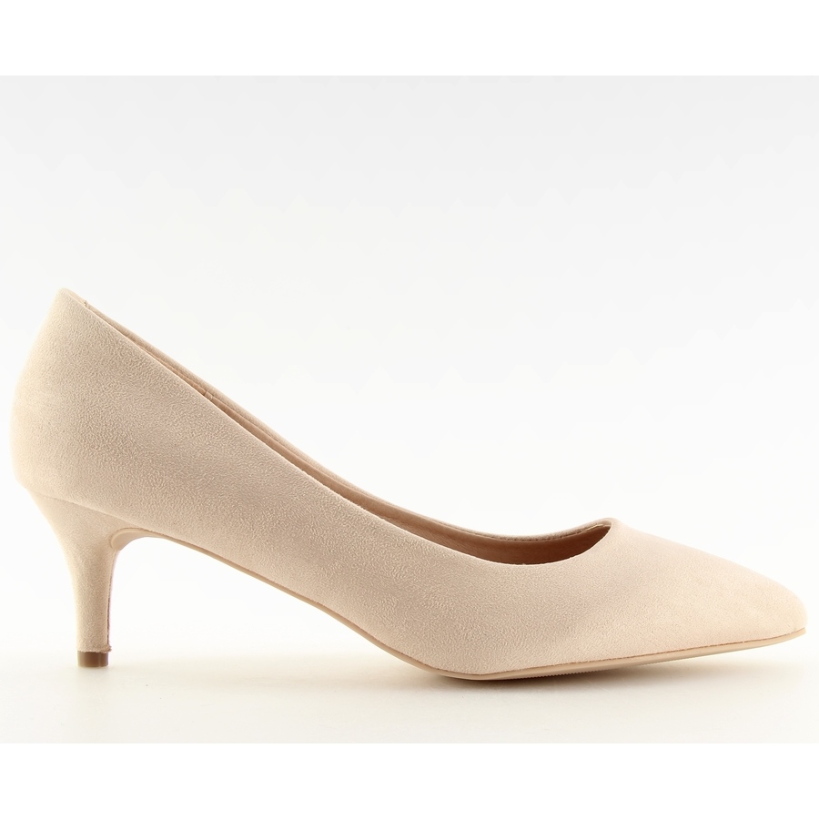 Eleganti pompe da donna realizzate in pelle scamosciata ecologica. Il modello si distingue per un taglio sottile con un naso delicato in uno spitz leggero - una forma senza tempo che funzionerà per l'ufficio e per occasioni speciali. Il tallone basso e stabile con un'altezza di 6 cm fornisce comfort con usura più lunga, mentre dimmette la figura. Il colore beige è universale e facile da combinare con stili diversi.