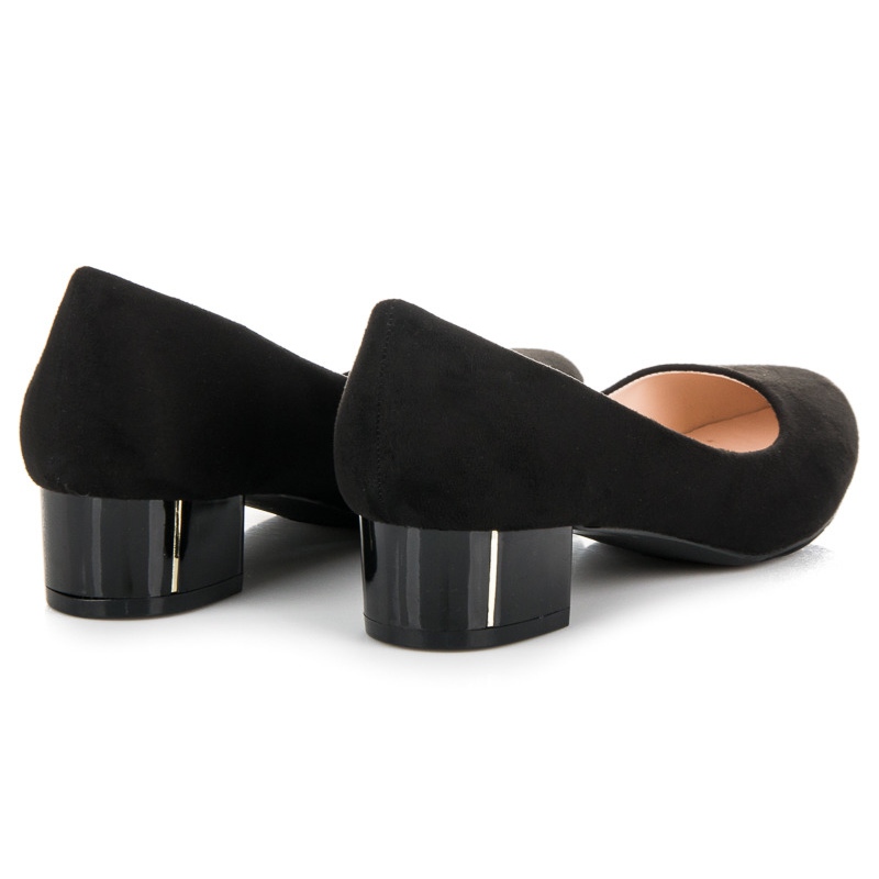 Il tacco basso di 5 centimetri rende le décolleté non solo eleganti, ma anche estremamente comode, rendendole una scelta perfetta sia per le uscite di tutti i giorni che per le occasioni più formali. La loro punta smussata e il colore nero universale fanno sì che queste scarpe si adattino perfettamente a vari stili.