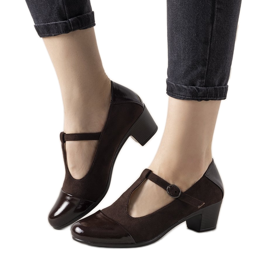 Dettagli: Décolleté marroni su pilastro con punta Dessert verniciata marrone