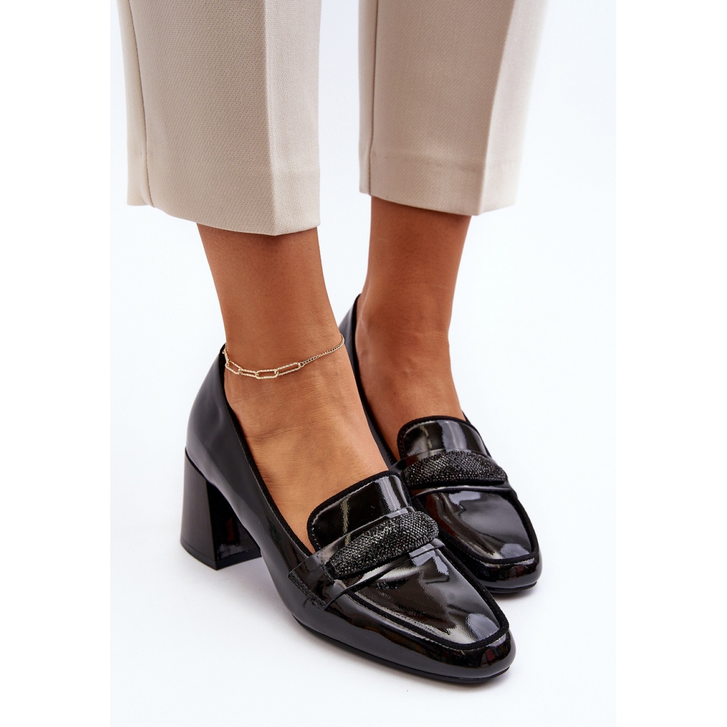 Le pompe hanno un palo di alto livello di 6,5 cm, il che dà loro eleganza e le rende un complemento perfetto per le stilizzazioni sia quotidiane che più formali. La decorazione unica sulla parte anteriore della tomaia dà loro un personaggio unico, attirando gli occhi e enfatizzando lo stile alla moda.