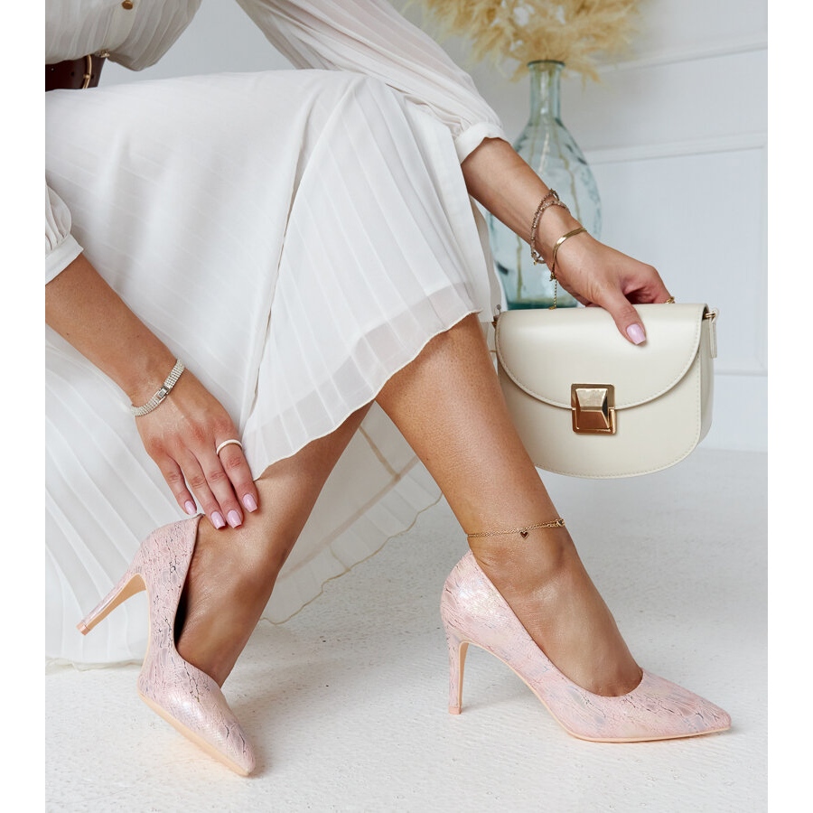 Decolleté rosa metallizzato con inserto Gantier in pelle