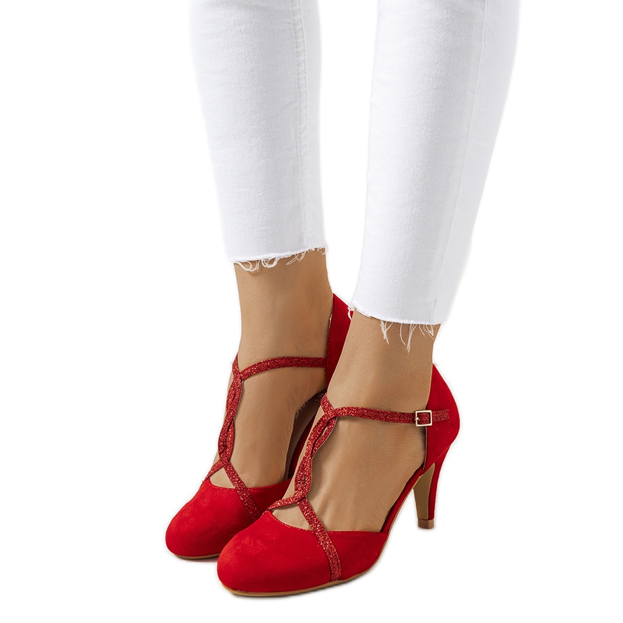 Scopri l'eleganza e la femminilità con le décolleté rosse a tacco alto Luiken. Queste scarpe uniche ti faranno sentire sicura ed elegante in ogni situazione. Il motivo intrecciato della cintura combinato con glitter lucenti conferisce loro un carattere unico. Il tacco sottile di 7,5 cm e la punta rotonda metteranno in risalto magnificamente le tue gambe, donando ad ogni styling un nuovo splendore.