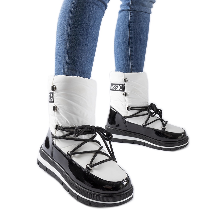 Progettati per mesi più freschi, questi stivali da neve bianchi saranno un complemento perfetto per il tuo guardaroba invernale, indipendentemente dal fatto che tu stia andando a fare una passeggiata per la città o incontro agli amici. Grazie alla pelliccia all'interno delle scarpe e ai colori interessanti - bianco con accenti neri - attireranno l'aspetto e aggiungeranno il carattere di qualsiasi stilizzazione.