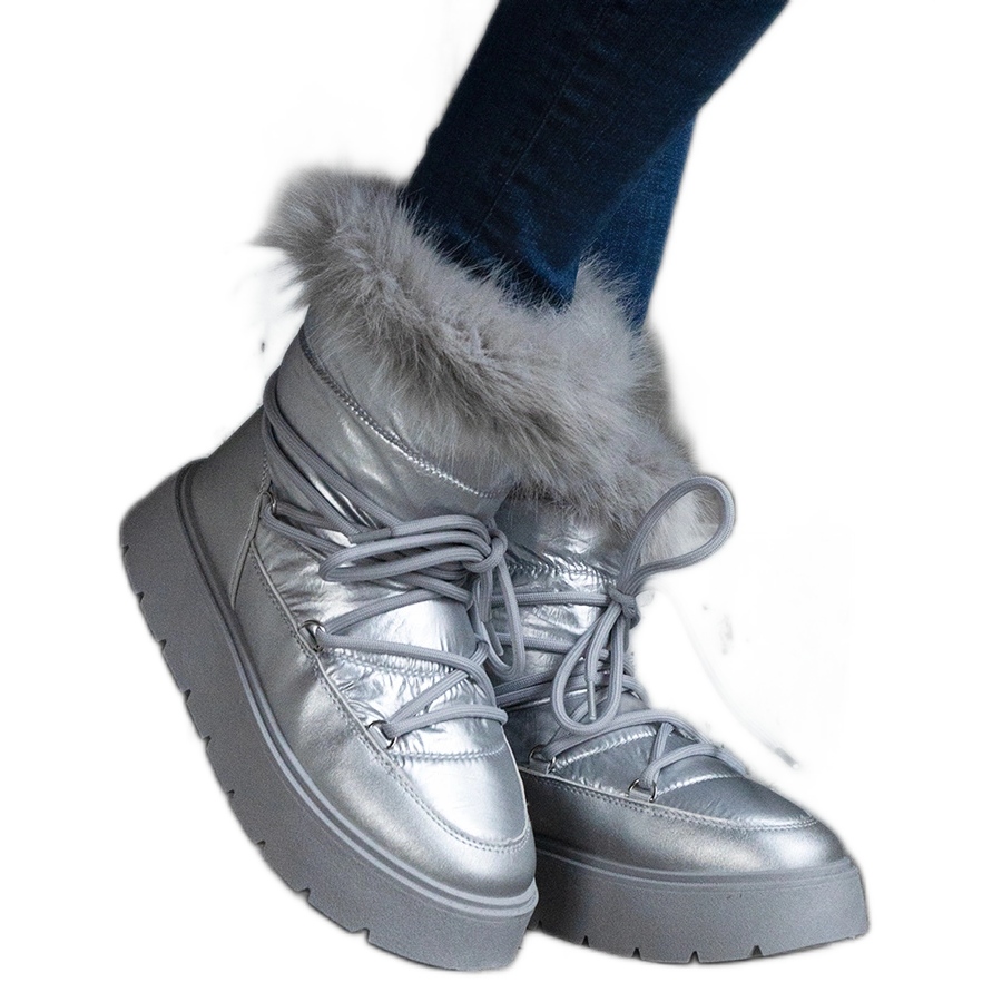 Dettagli: Doposci da donna isolati argento con pelliccia