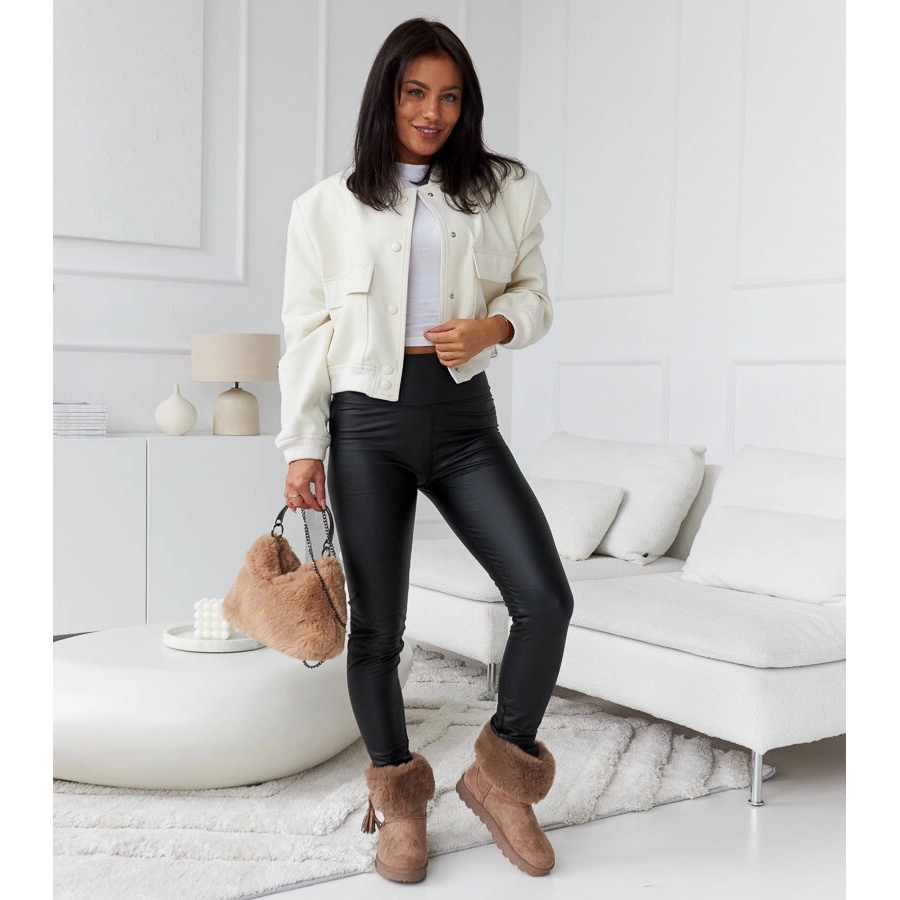 - con leggings e una giacca giù per le passeggiate del fine settimana.