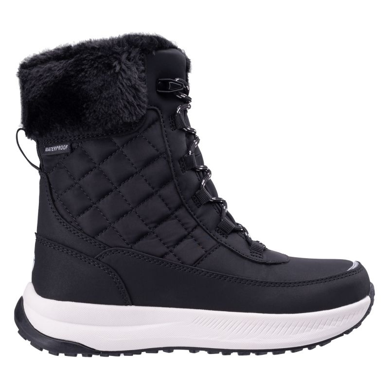 Grazie al dispositivo di fissaggio in pizzo, gli stivali da neve possono essere perfettamente adattati al piede, il che aumenta la loro stabilità e indossando comfort. La finitura nera e minimalista significa che questi stivali da neve corrispondono a varie stilizzazioni invernali, sia ogni giorno che per uscire con gli amici.