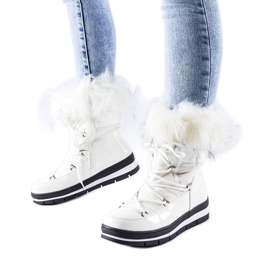 Dettagli: Doposci in vernice bianca con pelliccia Bow bianco