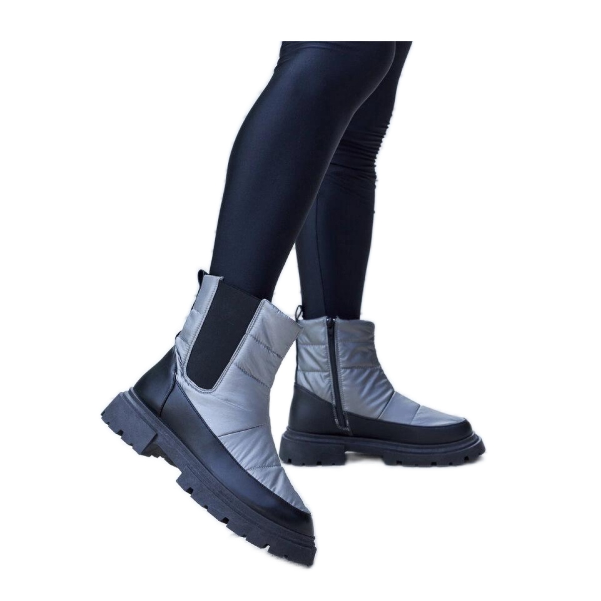 Il tallone di 4 cm aggiunge un sottile aumento, che rende le scarpe da neve non solo pratiche, ma anche visivamente attraenti. Il colore grigio con accenti neri si adatterà perfettamente a una varietà di stilizzazioni invernali, consentendo una facile abbinamento a molti abiti.